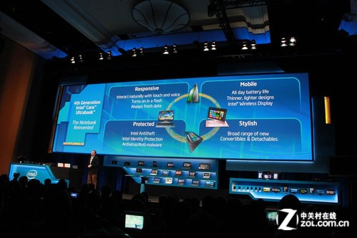 对于将在今年带来的第四代酷睿处理器的超极本,将拥有四个方面的改进。一、快速响应,通过触摸和声音直接唤醒超极本,做到即开即用。二、移动性,更低功耗的芯片让一整天续航成为可能,还将拥有再次刷新记录的厚度重量。三、安全保护,商用产品上将使用英特尔智能防盗技术。四、时尚,窄边框、低功耗和可变形设计让超极本拥有更多随意的外形。