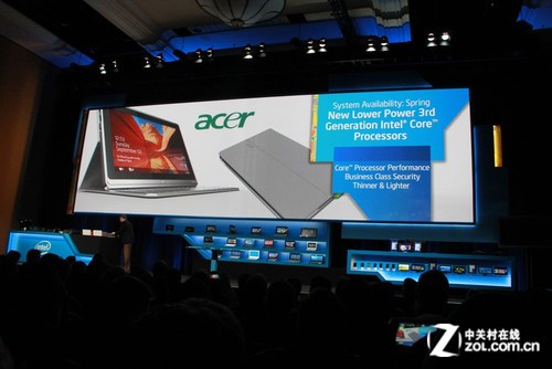 目前已经很多PC厂商已经展开了研发,台上展出了联想 IdeaPad Yoga 11s和宏碁可拆卸的超极本产品,宏碁超极本预计在春季上市。